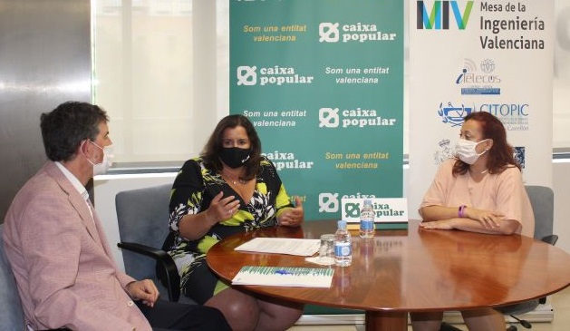 Ayer, 16 de junio de 2021, la Mesa de la Ingeniería Valenciana (MIV) -que preside la decana de COGITIVAL, Angélica Gómez y la entidad financiera Caixa Popular han firmado un convenio de colaboración con el fin de potenciar la sostenibilidad y trabajar conjuntamente en la celebración de eventos sociales en el contexto de la ingeniería. El acuerdo ha sido sellado en la sede de COGITI Valencia mediante las firmas de los representantes de ambas entidades, la presidenta de la MIV, Angélica Gómez, la presidenta del Foro Ingeniería y Sociedad, Regina Monsalve, y el director general de Caixa Popular, Rosendo Ortí, acompañados por el responsable de Segmento de Colegios Profesionales de Caixa Popular, Leopoldo Delgado.